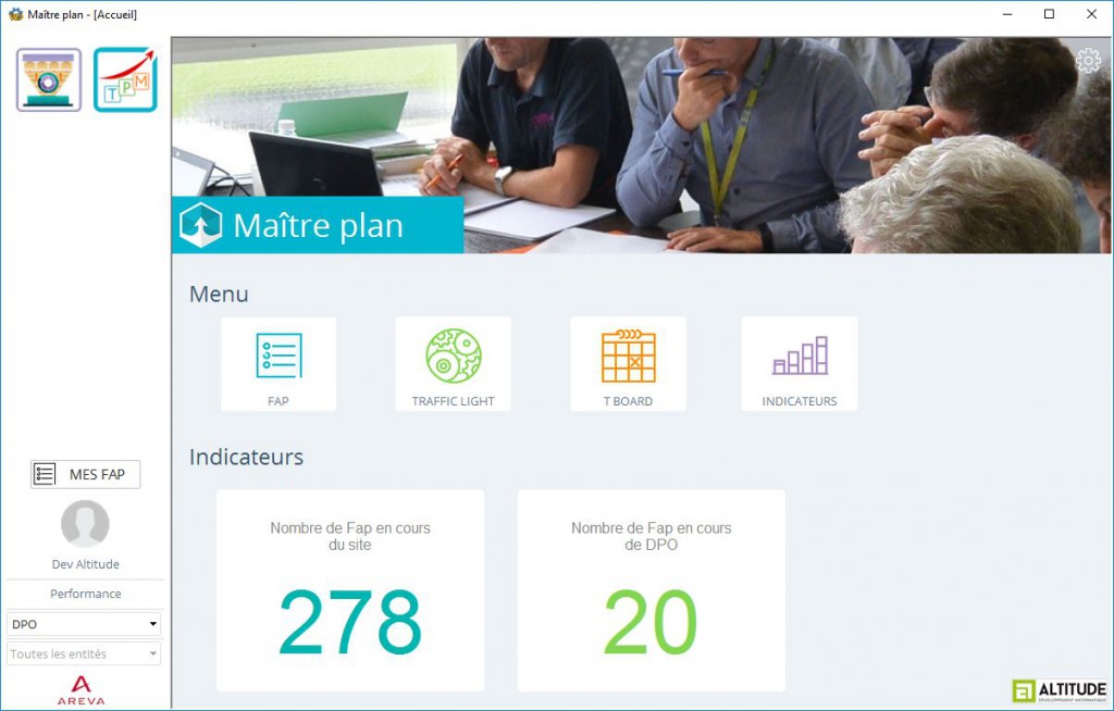 Le logiciel « Maître Plan » a été développé pour gérer la performance d’Areva, par le biais de fiches d’actions.